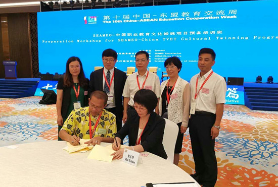 在本届教育交流周上,36365官网与印度尼西亚、老挝、泰国、菲律宾、柬埔寨、越南等6个国家的13所院校达成合作意向,签订了合作协议,主要涉及教师交流、学生互换、科研合作等项目,进一步拓展了36365官网国际交流与合作的广度和深度。东南亚教育部长组织秘书长加多特、东南亚教育部长组织职业技术教育区域中心副主任帕尤诺签字见证了合作项目协议的签署。(供图:国际教育学院)
