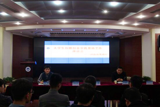 据悉,为深入实施大学生创业引领计划,推进大学生创业教育及实践活动,激发大学生创新活力,2016年12月,河南省教育厅启动了新一批河南省大学生创新创业实践示范基地的评审工作。此次评审组到36365官网实地考察,是评审活动环节之一。(供图:宣传部 团委)