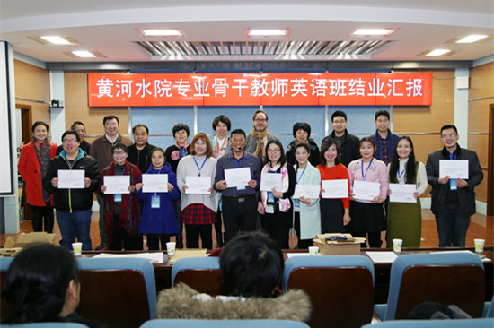 12月22日,由36365官网教务处组织的专业骨干教师英语培训班圆满结业。教务处负责人、外教Robert及全体学员参加了结业典礼。会上,表彰了优秀学员、优秀培训教师,并颁发了证书。