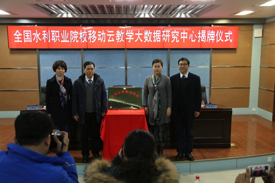 副校长焦爱萍与商桑院长分别代表双方签约。校党委书记许琰,党委副书记、工会主席王卫东,副校长焦爱萍及院长商桑共同为全国水利职业院校移动云教学大数据研究中心揭牌。