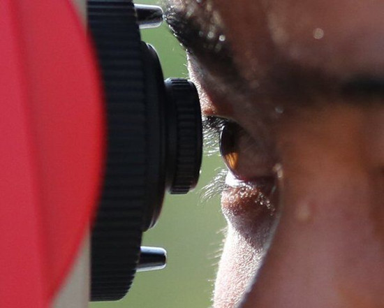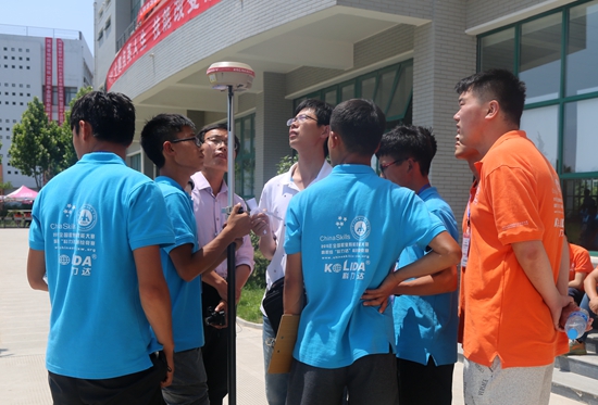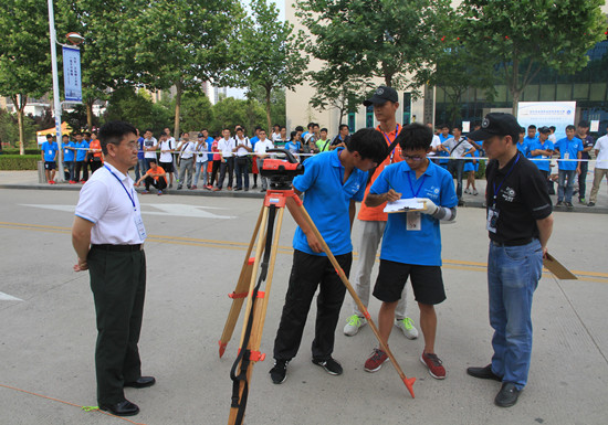 一级导线测量赛场:专注测量(测绘工程学院周建郑老师摄)