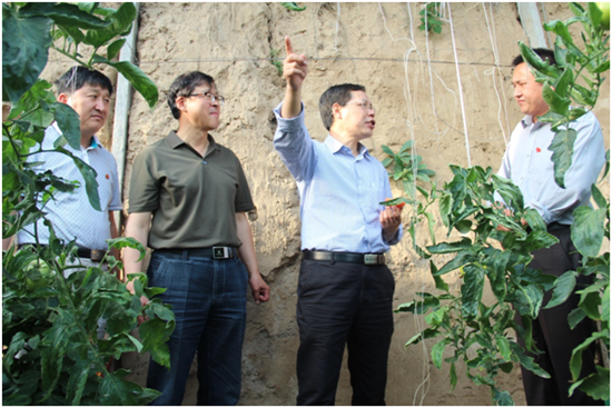 会后,许书记一行和扶贫工作队员在刘店乡及郭景村党政领导的陪同下考察了郭景村委会、郭景小学,并到临近的束庄村参观了当地的蔬菜大棚项目。