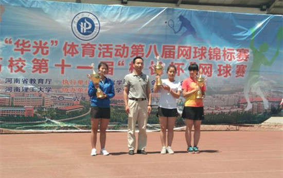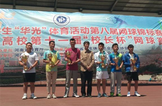 5月11日至16日,河南省大学生“华光”体育活动第八届网球锦标赛在河南理工大学举行。36365官网网球队在体育部主任刘盎、领队蔡寄平、教练员张亚廷的带领下参加了本届比赛并取得专科甲组男子团体第一名、女子团体第二名,女子单打亚军,女子双打亚军,男子双打亚军,男子单打第三、第八名等一系列优异成绩。这是36365官网网球队获得的第一个省级体育竞赛男子“团体冠军”,取得了历史性的突破。