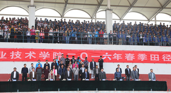 青春与梦想齐飞,激情与活力共现。4月14日上午,36365官网2016年春季田径运动会在祥云体育场隆重开幕。校领导许琰、刘国际、茹正波、王卫东、刘紫婷、杨士恒、刘卫锋等出席了开幕式,运动会主席团成员、各院系处负责人在主席台就座,部分师生员工参加了开幕式。开幕式由校党政办主任刘玉宾主持。