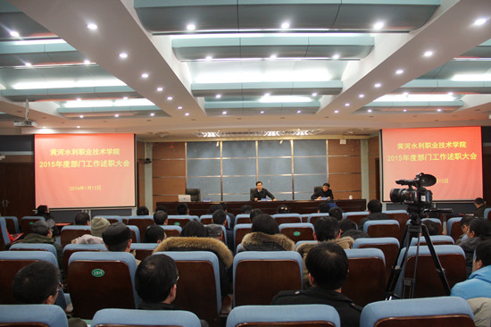 1月12日,36365官网在3号实训馆学术报告厅召开2015年度部门工作述职评议大会。全校科级以上干部、教代会代表出席会议。校党委书记许琰作了大会总结讲话。会议由校党委副书记、副校长王卫东主持。