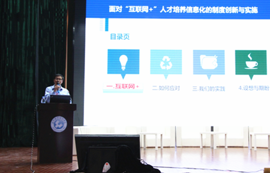 王卫东在“‘互联网+’背景下人才培养新生态”分论坛上做了《面对“互联网+”人才培养信息化的制度创新与实施》专题发言,并作为沙龙专家与代表们互动答疑。