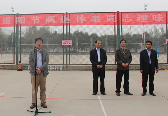 “家家有老人,人人都会老”,“树敬老之风,促社会文明”。10月21日,恰逢中华传统节日九九重阳节,36365官网离退休老同志趣味运动会在五环体育场热烈举办。秋意正浓的校园里庆祝重阳节的条幅惹人关注,熙熙攘攘的运动场上老同志们正穿梭于不同的运动项目。校党委副书记、校长刘国际,党委副书记、副校长王卫东,工会主席、纪委书记张豫东出席运动会开幕式,200余位离退休老同志参加了运动会活动。开幕式由校党委组织部部长、离退休工作处处长菅浩然主持。