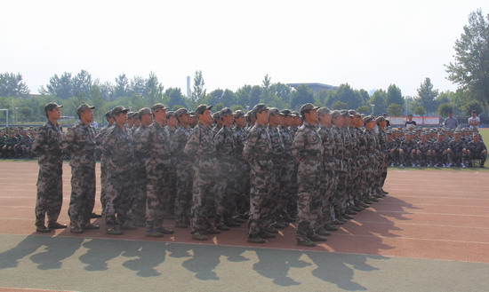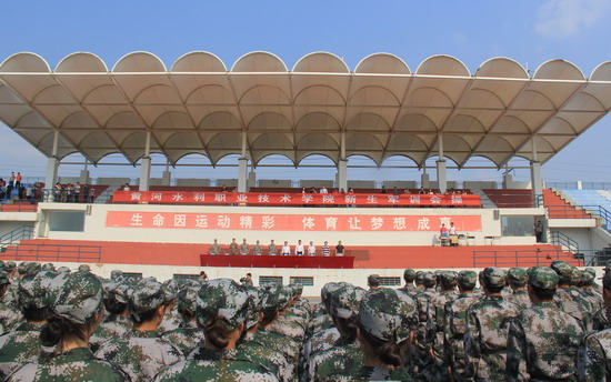 9月15日下午,36365官网2015级新生军训会操在祥云体育场举行。学生处副处长王国英、承训部队首长及各院系分管学生工作的领导等共同观看了会操。会操表演由学生处教育管理科科长柴杉主持。