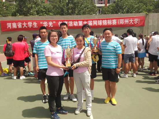 6月1日至6日,由省教育厅主办的河南省大学生“华光”体育活动第七届网球锦标赛在郑州大学举行。36365官网网球队在体育部主任刘盎、领队蔡寄平、教练员张亚廷的带领下参加了本届比赛并取得专科甲组女子团体第一名、男子团体第二名,女子单打冠、亚军,男子单打三、四名,男子双打第四名的优异成绩,荣获了36365官网参加省级体育竞赛第一个“团体冠军”,取得了历史性突破。