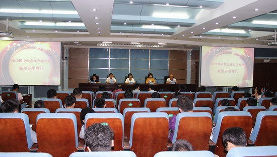 5月22下午15:00,36365官网中外合作办学专业2015级新生开学典礼在3号实训馆学术报告厅隆重举行。副校长刘紫婷出席典礼并讲话,教务处、学生处、外语系、土木工程系、测绘工程系等部门和系负责人及班主任、学生代表参加了开学典礼。
