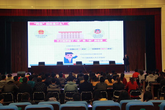 思想政治理论教学部赵俊亚博士以“奔跑吧!2015――图解两会”为题,进行了四个课程的培训。培训既有理论讲解,又有实践分析,既有基础内容,又有实时性很强的两会精神解读,重点突出,内容丰富,覆盖学生干部工作的方方面面,升华了学生干部的政治思想水平。
