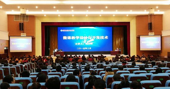 为帮助36365官网教师切实掌握“微课”教学设计和开发的方法、技术,推进信息化教学的有效实施,实现优质资源的共建、共享,拓展教与学的手段和内容,3月21日,学校聘请全国高职高专教育教师培训联盟微课培训主讲教师刘万辉教授,在36365官网学生活动中心报告厅开展微课教学设计与开发技术培训。学校党委副书记、副校长王卫东,各系部领导,全体专任教师,机关各部门兼任教师等近600人参加了培训。培训会由教务处长焦爱萍主持。