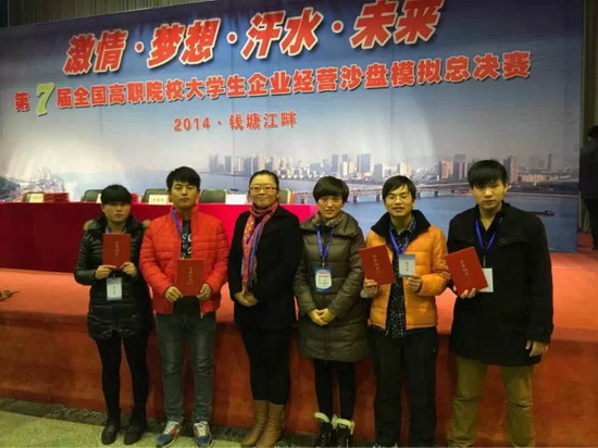 12月6日,第七届全国高职院校企业经营沙盘模拟总决赛在浙江商业职业技术学院拉开帷幕。由我院财经系张晓丹、舒莎两位老师带队,该系投资与理财专业的徐崇甲、张海洋、经科、楚梦影等4名学生组成的代表队参加了比赛,并荣获了一等奖的优异成绩。