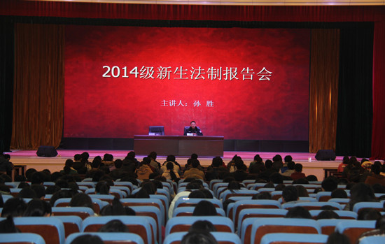 为进一步加强法制教育,增强学生的法律意识和法制观念,提高学生遵纪守法的自觉性,12月2日下午,我院学生处特邀开封市公安局金耀分局孙胜警官为新生作了一场精彩的法制报告。学生处工作人员、各系辅导员及2014级新生代表等700余人聆听了报告。报告会由学生处副处长王国英主持。