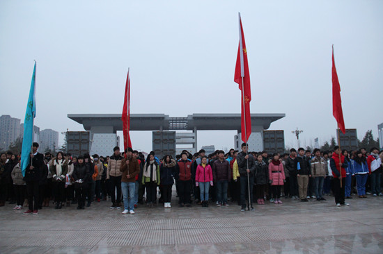 2014年12月9日是“一二·九”运动79周年,早上7:00,院团委在明志广场组织开展了“纪念‘一二·九’爱国运动,弘扬爱国主义精神”主题教育活动,300多名院级学生干部及180多名新团员参加了本次活动。