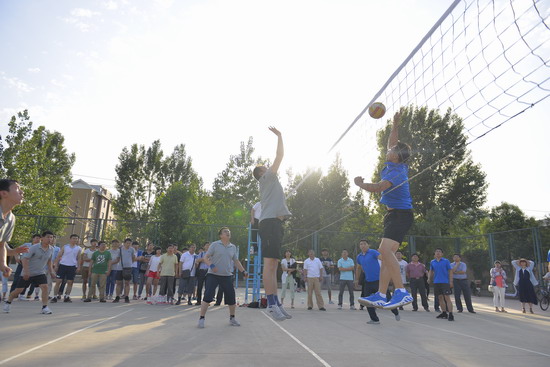 排球赛是我院一项传统运动竞赛项目,备受广大教职工欢迎和关注,本届比赛更是精彩纷呈,高潮迭起。尤其是冠亚军决赛,双方队员冒着高温酷暑,团结协作,顽强拼搏,使比分犬牙交错,多次逼平,比赛过程更是扣人心弦,悬念迭起,队员们有力到位的击球和精彩的表现赢得了在场师生观众的阵阵喝彩。场下的啦啦队也不甘示弱,各显神通,击鼓声、加油声此起彼伏,更吸引不少摄影爱好者为他们定格了一幕幕精彩的瞬间。