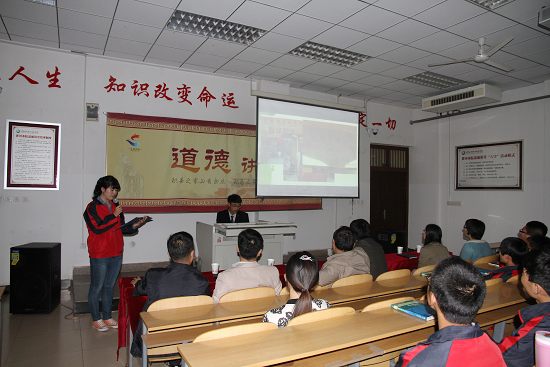 讲堂在师生合唱《爱的奉献》中拉开序幕。在场师生观看了2011感动中国人物孟佩杰养育瘫痪养母的感人事迹,深深被她不离不弃、矢志不移的精神所感动。之后,师生们集体学习了《孟子》中“老吾老以及人之老、幼吾幼以及人之幼”的经典名句,领悟中华民族尊老爱幼的传统文化内涵。一幅幅幻灯片中的照片让学生们回顾了自2008年开始,土木工程系青年志愿者6年如一日,坚持每周到开封市家源颐养养老中心慰问老人、打扫卫生、陪老人聊天说话的故事,看着图片上老人的一张张幸福笑脸,大家深受志愿服务精神的感染,正能量在学生心中传递。幻灯片放映后,家源颐养养老中心院长郭健发表讲话,他说,图片上的老人很多已经都不在了,但是,这些志愿服务活动让人深受感动,土木工程系志愿者们没有“赶重阳”、“凑奉献”,而是常年坚持,这才是难能可贵的,他代表养老中心近200名老人向该系青年志愿者代表们表示衷心感谢。感动之余,现场学生们纷纷纷发表感悟,表示要孝敬老人,关爱他人。最后,道德讲堂在全场师生集体进行道德承诺宣誓中结束。