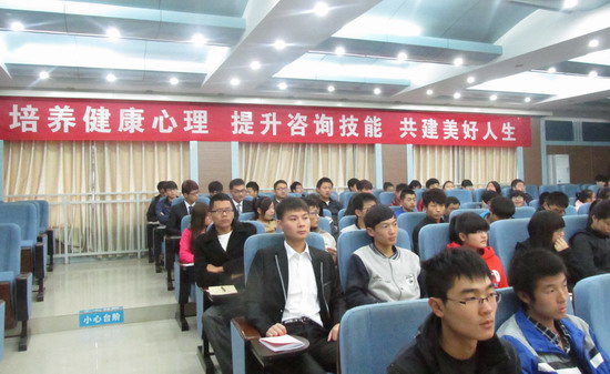11月9日-10日,我院在学术报告厅举办了首届朋辈心理咨询员培训班系列培训活动。全体2013级班级心理委员和院阳光心理社新成员参加培训。培训旨在培养一支具有较强心理自助与助人能力的学生骨干队伍,进一步健全和完善我院三级心理健康教育网络。本次培训以学生处主编的《大学生朋辈心理咨询手册》为参考教材,以理论讲授、团体心理辅导和活动体验等为主要形式。