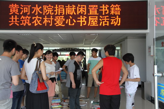 今年6月,根据开封市文明办、开封市文广新局、开封市图书馆《关于捐献闲置书籍,共筑农村爱心书屋的通知》要求,我院文明办向全院师生发出了“捐献闲置书籍,共筑农村爱心书屋”的号召,全院各单位广泛发动,积极组织师生开展募捐书籍活动,由环境与化学工程系等17个系部(院)、后勤服务中心等11个职能部门的师生共捐献各类书籍1387册。活动的开展,在全院师生中形成了捐献书籍,用爱心传递真情,共筑爱心书屋,共圆农村孩子成长成才梦的浓厚氛围,更推进了我院精神文明建设活动的深入开展。