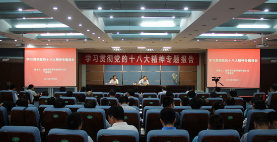 为推进学习宣传贯彻党的十八大精神活动的深入开展,7月6日上午,我院特邀河南省委党校丁素教授在3号实训馆学术报告厅作“学习贯彻党的十八大精神”专题报告。全体院领导、全院中层干部、各系党总支办公室主任、各系行政办公室主任、各系教研室主任、辅导员、职业发展与就业指导团队成员认真听取了报告。报告会由党委副书记、副院长王卫东主持。该专题报告会是我院暑期干部培训的重要内容之一。