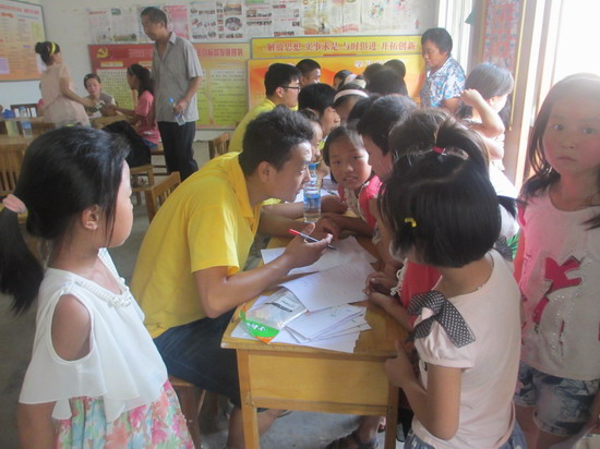7月3日上午,“邢二朋志愿服务队”全体队员深入村委会、家庭和田间地头对当地的教育和学龄儿童生存状况进行调查。志愿服务队队员向学龄儿童及家长详细讲述了邢二朋的事迹,鼓励孩子们一定要好好学习,不断进步,在学校要互助互爱做个好学生,在家庭要孝敬长辈做个好孩子。希望他们像邢二朋一样,从小就怀揣一颗感恩的心,长大以后成为社会的栋梁之才。