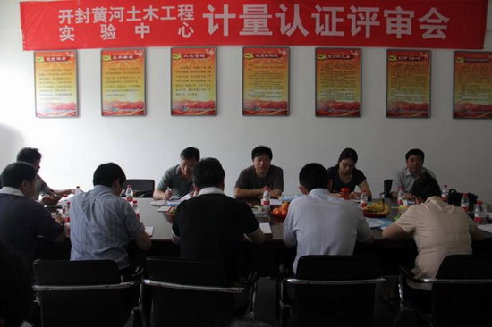 6 月16日,由河南省质量技术监督局组织,计量评审专家冷元宝组长带队的计量认证评审专家和开封市质量技术监督局潘新生任监督员的评审组一行 4 人到我院黄河土木试验中心实施现场计量认证监督评审。