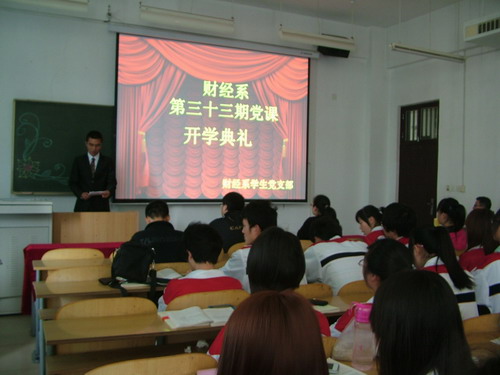 为切实加强入党积极分子的培训教育,推动党员发展工作顺利进行,4月14日,我院党校第33期入党积极分子培训班开班典礼顺利举行。鲜红的党旗、统一的着装、整洁的板报表达了学员积极要求进步的决心;书记的讲话、班主任的要求、辅导员的叮咛透露出师长的殷殷期许。开班典礼的圆满举行为下一步的党课培训在精神上做好了总动员。