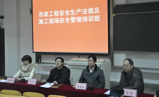 1月17日上午,由开封市市政工程安全生产监督站和我院联合开办的“市政工程安全生产法规及施工现场安全管理培训班”在我院开班。我院党委副书记、副院长王卫东,教务处处长焦爱萍和市政质监站站长杨东瑜、副站长朱晖出席开班典礼。培训班110余名学员参加了开班典礼。