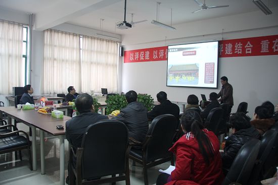 环境与化学工程系和旅游系主任对本系概况及评估准备工作进行了简要介绍,环境监测与治理技术和旅游管理专业的带头人王宗舞和徐永红按照评估指标体系分别作了专业剖析,环境监测、环境工程设备选型安装与运行维护、导游业务及现代饭店管理四门课程的负责人魏家红、朱惠斌、王启和花菊香分别进行了说课。