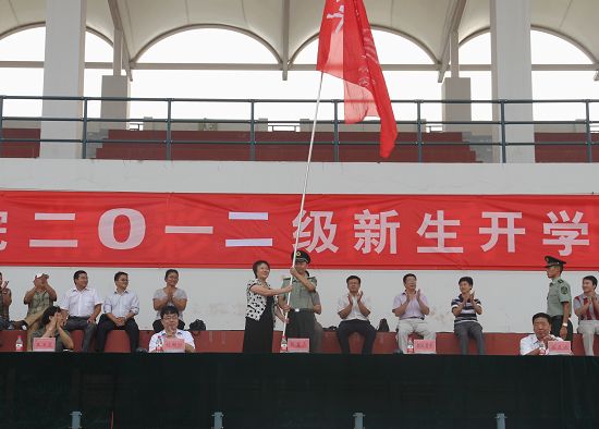 党委书记张惠贞向军训团首长授团旗,标志着我院2012级新生为期13天的军事训练工作正式拉开帷幕。