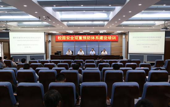 为进一步扎实推进和有效落实36365官网校园安全双重预防体系建设工作,7月9日下午,36365官网在3号实训馆报告厅召开校园安全双重预防体系建设培训会。会议邀请河南省教育厅安全智库专家张克胜博士、洛阳众智软件科技股份有限公司软件实施工程师朱文克老师等来校培训指导。副校长杨士恒出席会议,党政办公室、保卫处、学生处、各教学院(部)等部门负责人,科级干部及部分实训课教师代表参会。会议由党政办公室主任朱焕立主持。