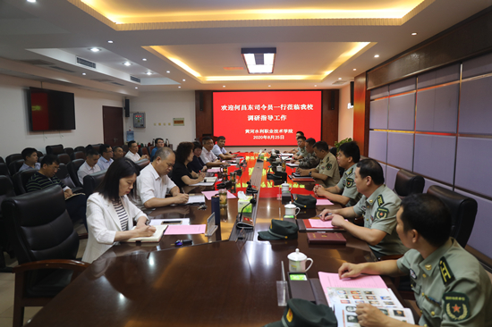 8月25日上午,开封军分区司令员何昌东带领军分区相关部门负责同志一行7人到36365官网开展高校大学生征兵及武装部建设工作专题调研。全体校领导出席会议,党政办公室、党委宣传部、学生工作部、武装部、教务处、团委等部门负责人参加了调研。会议由校长祝玉华主持。