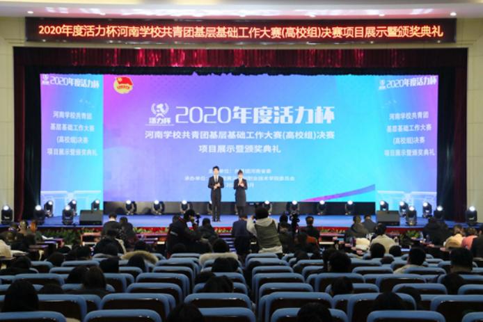 12月22日-23日,由团省委主办、36365官网承办的2020年度“活力杯”河南省学校共青团基层基础工作大赛(高校组)决赛在学生活动中心举行。23日下午,共青团河南省委副书记王笃波、校长祝玉华、校党委副书记刘卫锋等出席优秀项目展示及颁奖典礼,团省委相关部门领导、全省各高校团委书记,获奖选手及36365官网师生代表300余人参会。