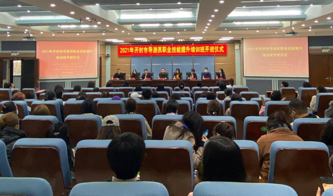 3月26日上午,开封市2021年导游从人员职业技能提升第二期培训班开班仪式在报告厅举行。副校长焦爱萍,开封市文化广电和旅游局党组成员、副局长华应根、导游服务中心主任张萍,开封市教育局成人教研室主任牛珅,开封市示范区人社局副局长王丽、技能鉴定科科长张琦,旅游学院党总支书刘岩、院长焦红强出席了开班仪式。仪式由刘岩主持。