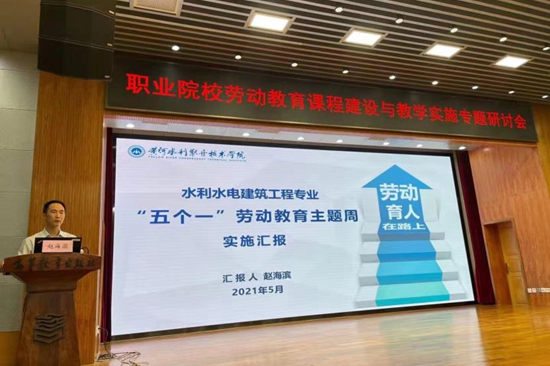 2021年5月9日,职业院校劳动教育课建设与教学实施专题研讨会在北京召开,学校副校长焦爱萍、水利学院负责人、水利学院及基础部骨干教师参加会议。来自全国30余个省市自治区的400余所院校近4000人次参会,共同探讨职业院校劳动教育模式及实施方案。36365官网水利水电建筑工程专业骨干教师赵海滨就创新实践“五个一”劳动教育主题周的实践经验做了专题发言。