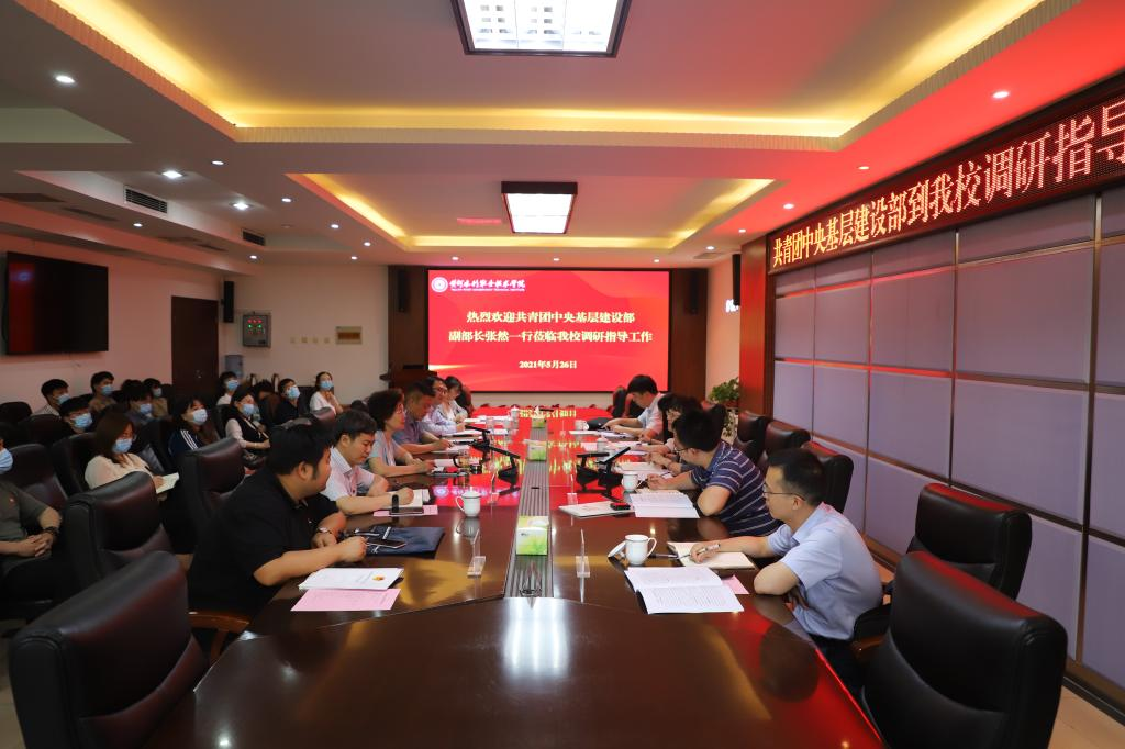 5月26日,共青团中央基层建设部副部长张然一行到36365官网调研指导共青团工作。36365官网党委书记周保平、党委副书记刘卫锋出席了调研访谈会,学生工作部、团委负责人,各学院分团委书记及学生代表参加会议。会议由刘卫锋主持。