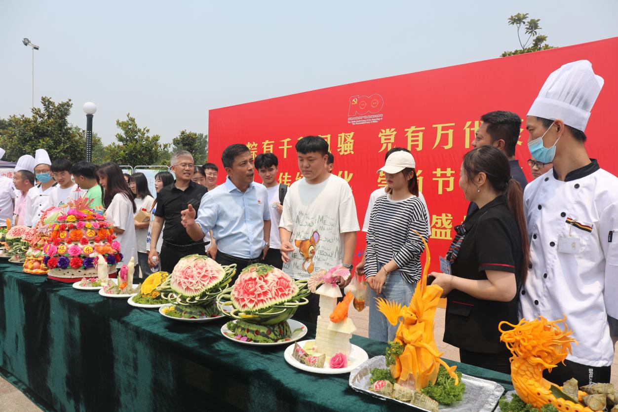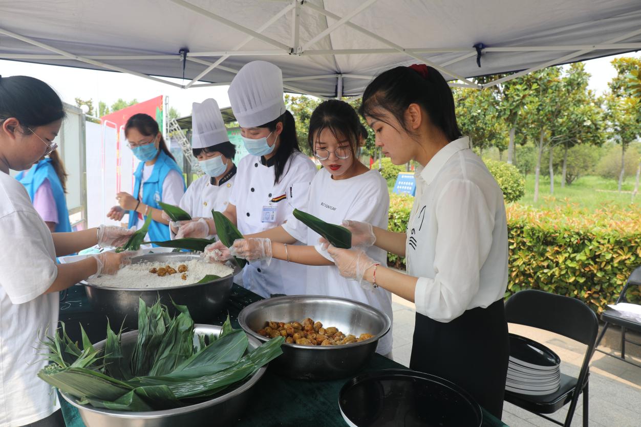 活动主要有六个现场:主会场,同学们纷纷在“粽有千秋风骚、党有万代豪情;弘扬传统文化、传承节俭民风;学习百年党史、聚力盛世征程”主标识牌前合影留念;答党史知识、赢趣味盲盒现场,同学们踊跃答题,赢得阵阵掌声以及神秘趣味的盲盒;端午文化学习现场,同学们在端午文化展牌前流连忘返,饶有兴趣的了解端午节的由来以及全国各地的端午文化风俗,认真仔细学习粽子的包法、做法;粽子摆盘展示现场,学生餐厅师傅各展厨艺,比拼刀工,用灵巧的双手雕刻出充满浓郁端午文化的各种雕花,一个个栩栩如生、文化十足、趣味十足,引得同学们纷纷拍照留存;包粽子现场,同学们自己动手,按照传统以及自己独创的方法展开了包粽子比赛,精彩不断、笑声不断,同学们劳动并快乐着;品尝粽子现场,活动期间同学们可以免费领取一份粽子,在中国传统节日文化的氛围中感受黄河水院大家庭的温暖与幸福。