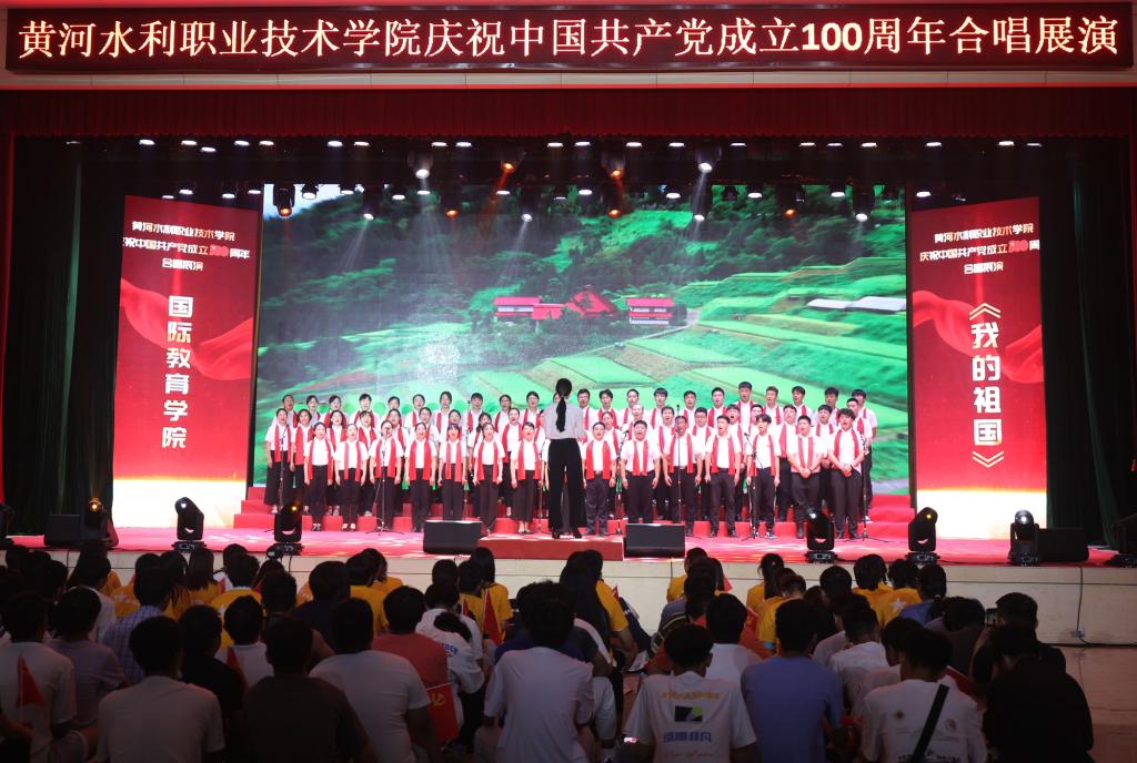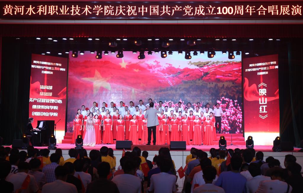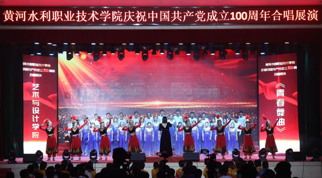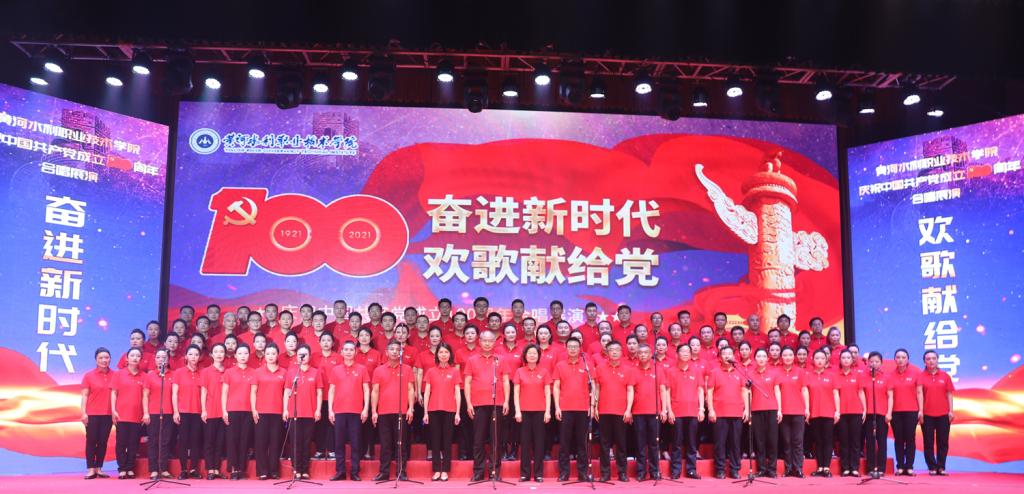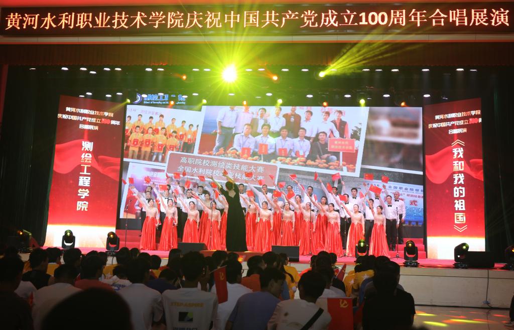 合唱展演旨在庆祝中国共产党成立 100 周年,扎实推进学校党史学习教育深入开展,唱响爱党爱国爱社会主义的时代主旋律,引导广大教职员工抒发爱国之情、砥砺强国之志、实践报国之行,激发爱党爱国的热情。展演以中国共产党百年发展历程为主线,分为星星之火、砥砺前行、改革硕果、展望未来等4个篇章,采用伴舞、朗诵、领唱等形式,充分展现了黄河水院人感恩奋进、向善向上的精神面貌,展示了为党育人、为国育才的使命担当,凝聚起了推动学校“双高计划”建设和 “十四五”高质量发展的强大动力。