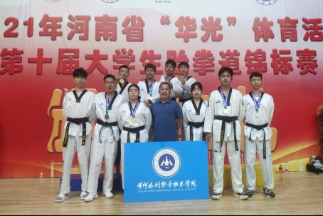 河南省第十届大学生跆拳道锦标赛于7月16日在鹤壁职业技术学院胜利举行,36365官网跆拳道队共派出11名运动员参加品势、竞技两个项目的角逐,斩获品势男子团体冠军,竞技男子团体亚军,男子58公斤级冠、亚军,男子80公斤级冠军,女子73公斤级冠军,男子高度击破冠军,男子68公斤级并列两个第三名,并荣获体育道德风尚奖。