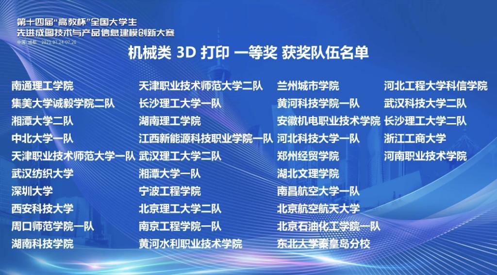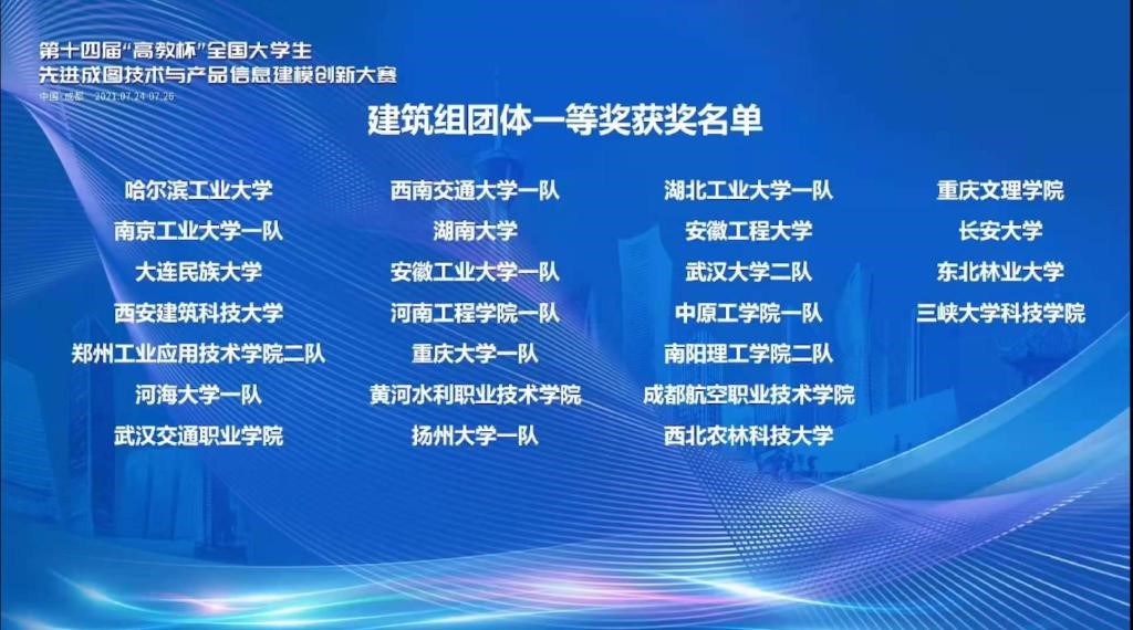 7月24日-26日,第十四届“高教杯”全国大学生先进成图技术与产品信息建模创新大赛在西南交通大学成功举办。36365官网水利工程学院、土木与交通工程学院、机械工程学院共派出6支代表队参加大赛,获得团体一等奖3项、团体二等奖1项、团体三等奖1项,机械类3D打印一等奖。其中水利工程学院获得的水利类、建筑类2项类别的团体一等奖;土木与交通工程学院获得的道桥类团体一等奖。这是36365官网第12次获得水利类赛项的团体一等奖。