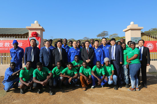 校党委书记许琰一行与36365官网赞比亚大禹学院教师和学员合影