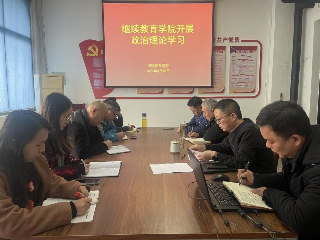 3月15日下午,继续教育学院开展政治理论学习,深入学习全国 “两会政府工作报告”精神,全体教职工参加会议。会议由院长薛建荣主持。