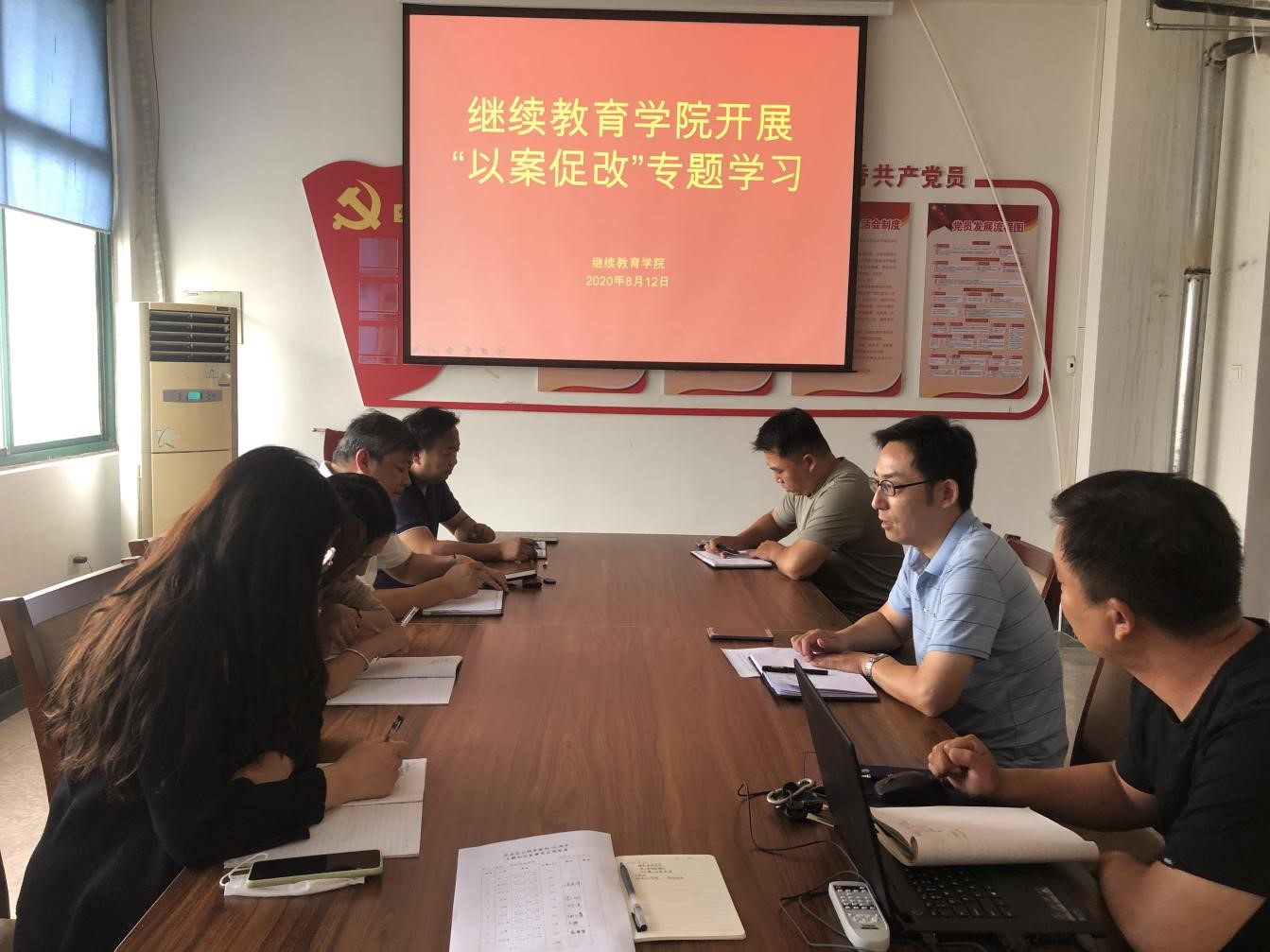 根据继续教育学院《2020年以案促改工作实施方案》安排,8月12日,院长杜广平组织全体教职工在四号教学楼4楼会议室开展“以案促改”专题学习。