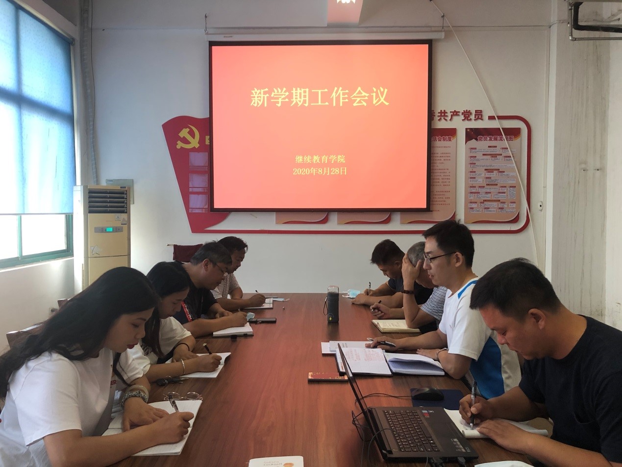 8月28日上午,继续教育学院在四号楼会议室召开新学期工作会议,会议由院长杜广平主持,全体教职工参加会议。
