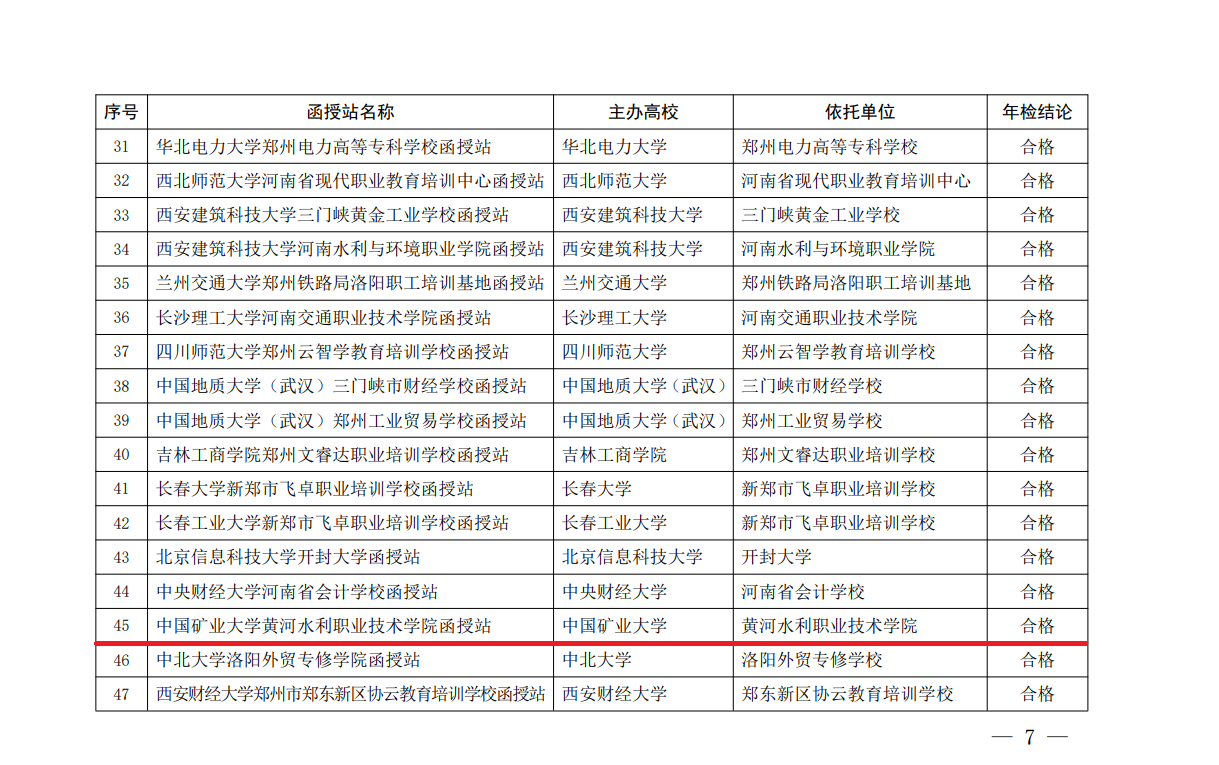 近日,河南省水利厅印发《河南省教育厅办公室关于2021年高等学历继续教育校外教学点年检结果的通报》教办职成〔2021〕381号,36365官网的中国矿业大学bet36365路检测中心函授站顺利通过2021年河南省高等学历继续教育校外教学点年检。
