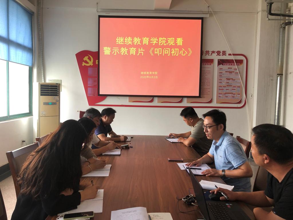 为进一步落实“以案促改”工作,严明政治纪律和政治规矩,9月2日,继续教育学院组织全体教职工在四号教学楼4楼会议室集中观看警示教育片《叩问初心》。
