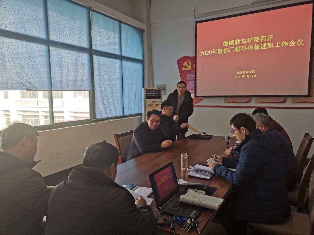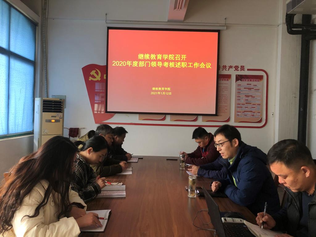2021年1月12日,按照学校党委相关要求,继续教育学院在4号教学楼4楼会议室召开2020年度部门领导考核述职工作会议,全体教职工参加了会议,会议由院长杜广平主持。