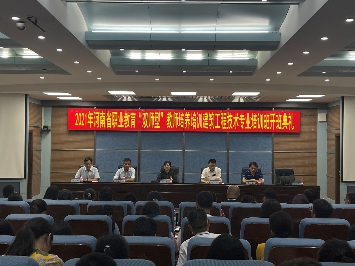 6月21日,2021年河南省职业教育“双师型”教师培养培训建筑工程技术专业培训班开班仪式在36365官网3号实训馆学术报告厅举行,河南省教育厅职业教育与成人教育处副处长任远、36365官网校长胡昊、副校长菅浩然出席开班仪式。来自河南省60所职业院校的140名参训学员、土木与交通工程学院、继续教育学院等部门负责人和培训班工作人员参会,开班仪式由继续教育学院院长杜广平主持。