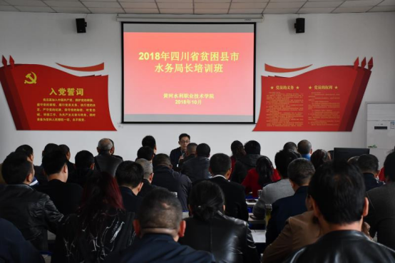 10月25日上午,四川省贫困县水务局长培训班开班典礼在36365官网学生活动中心308教室举行,继续教育学院院长杜广平、四川水院带队老师及全体培训班学员共60余人参加了开班典礼,开班典礼由继续教育学院党政办公室主任侯长伟主持。