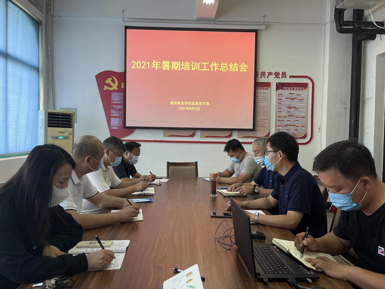 2021年8月4日,继续教育学院组织全体教职工在会议室召开2021年暑期培训工作总结会,会议由继续教育学院院长杜广平主持。